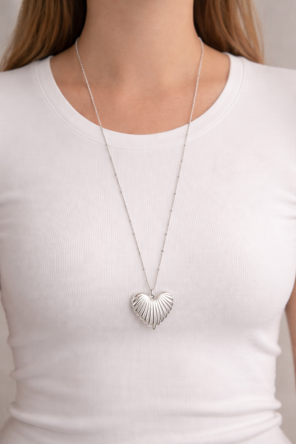 Lange elegante hart ketting Zilver