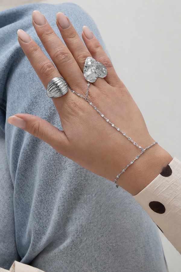 Hand chain met chunky ketting Zilver